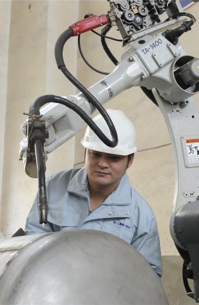2台松下焊接机器人,高脉冲焊接,无飞溅,自动化程度高,焊缝美观